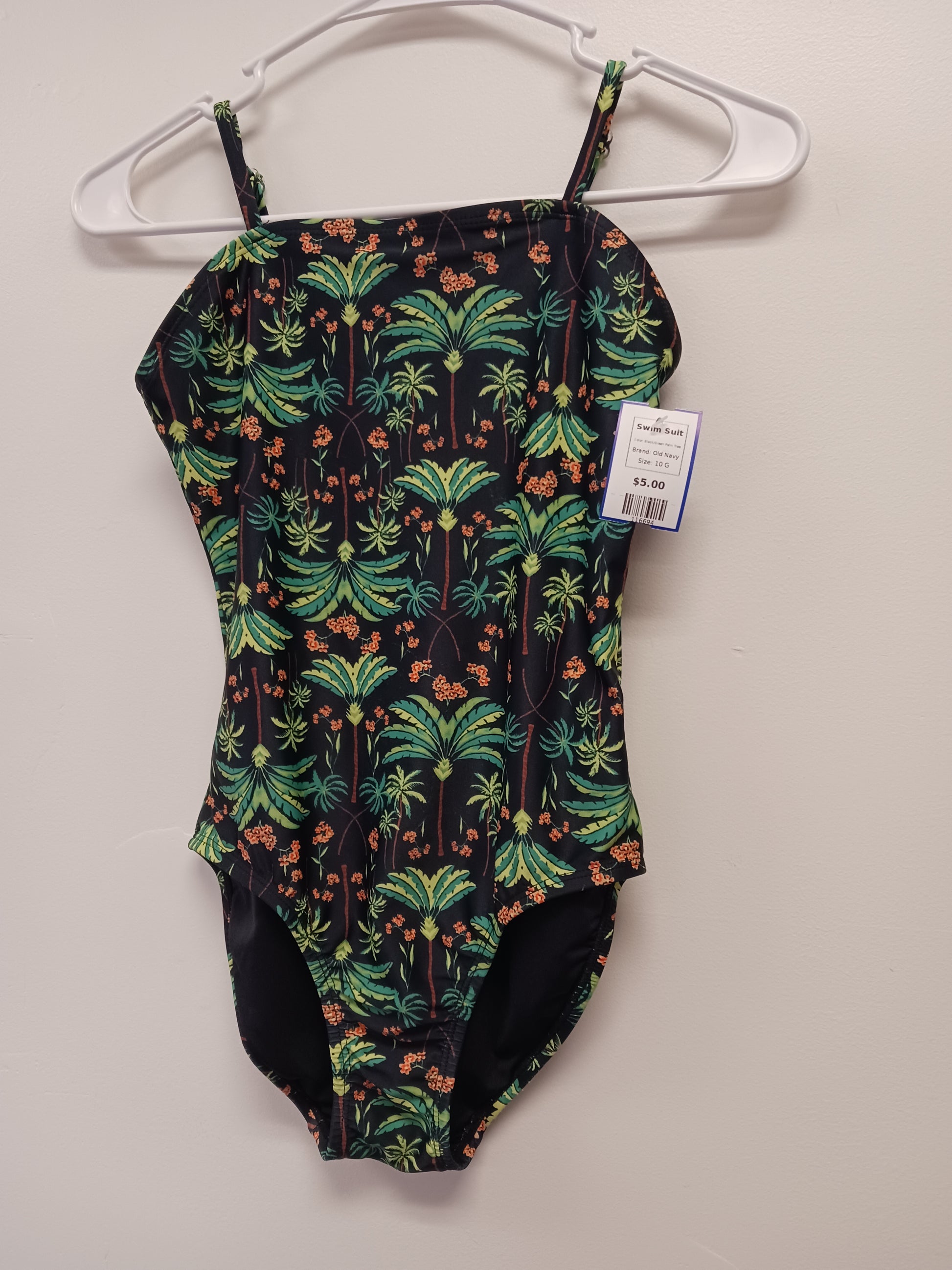 Black/Green Palm Tree Old Navy Swim Suit, 10 G