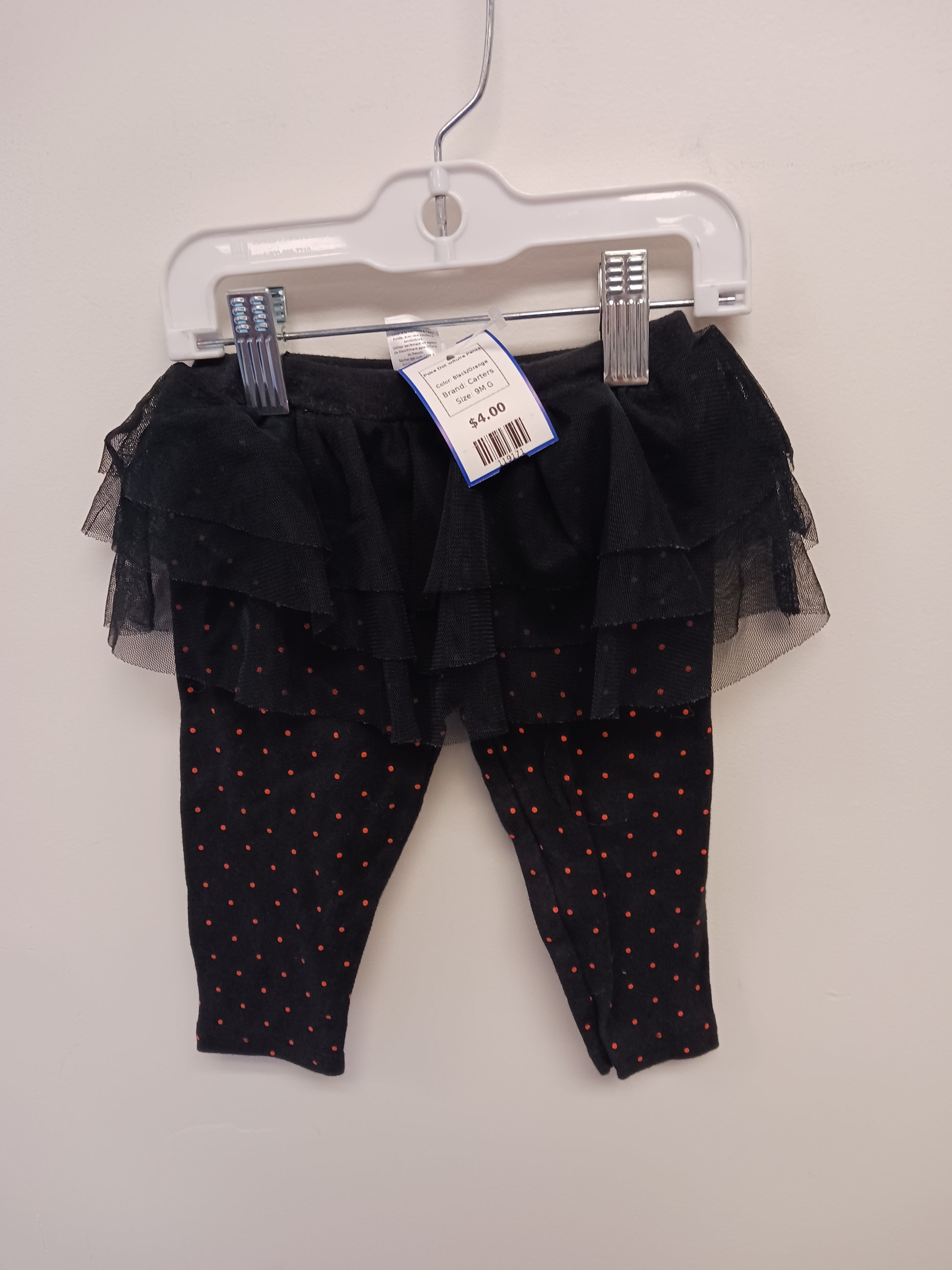 Black/Orange Carters Poka Dot w/tulle Pants, 9M G