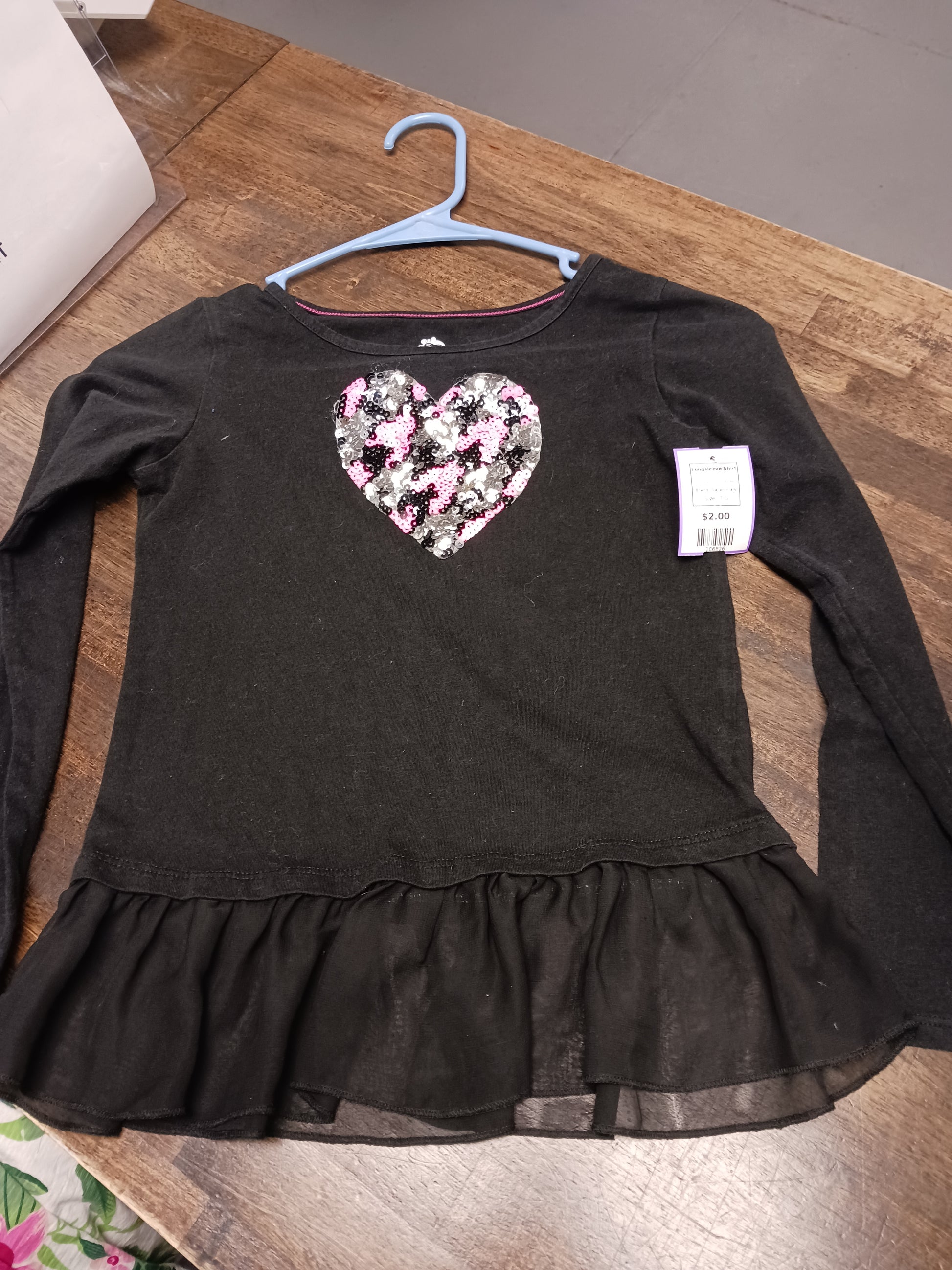 Black/Pink/Silver Heart Garanimals Longsleeve Shirt, 7 G