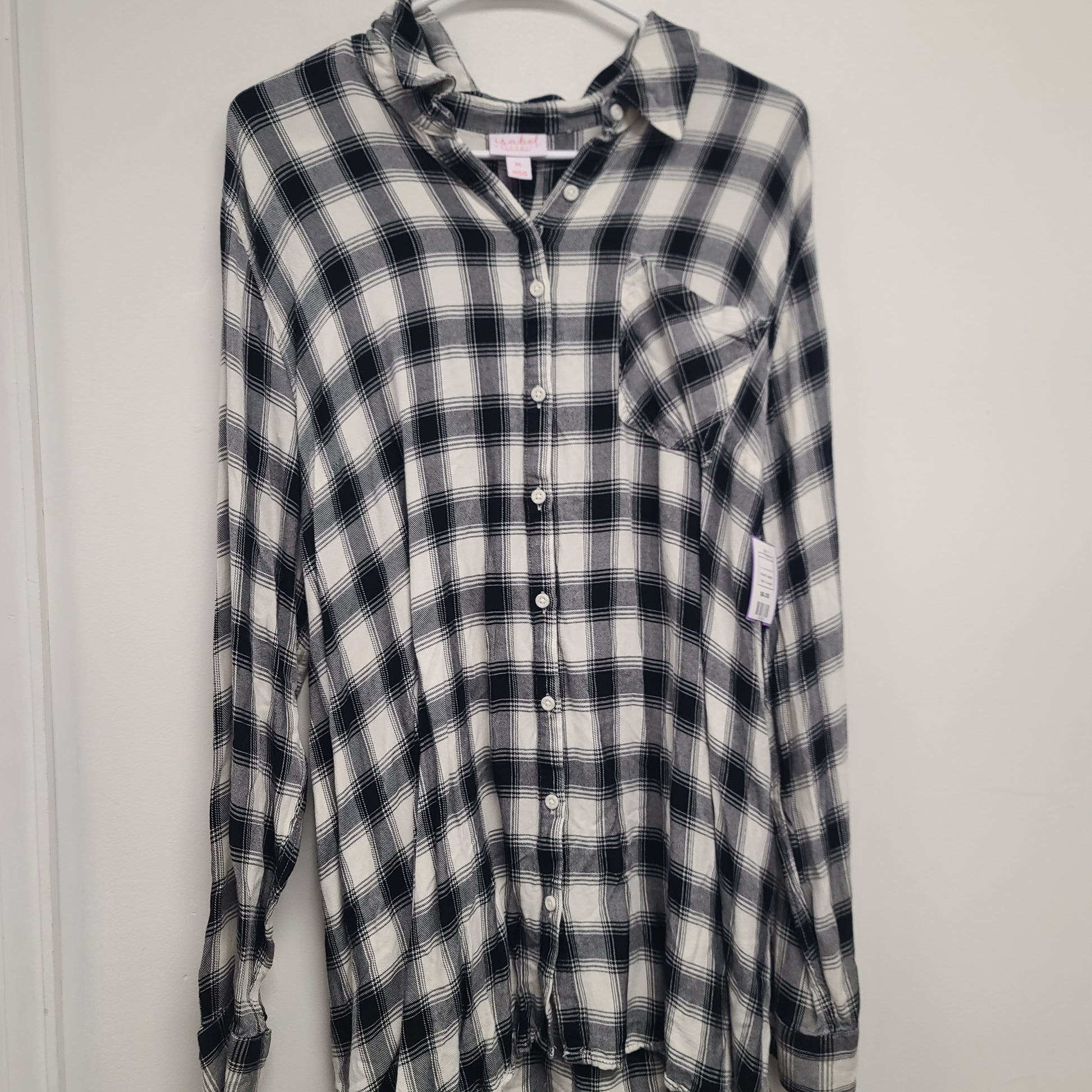 Black/White Plaid Isabel Maternity Longsleeve Shirt, X-Large