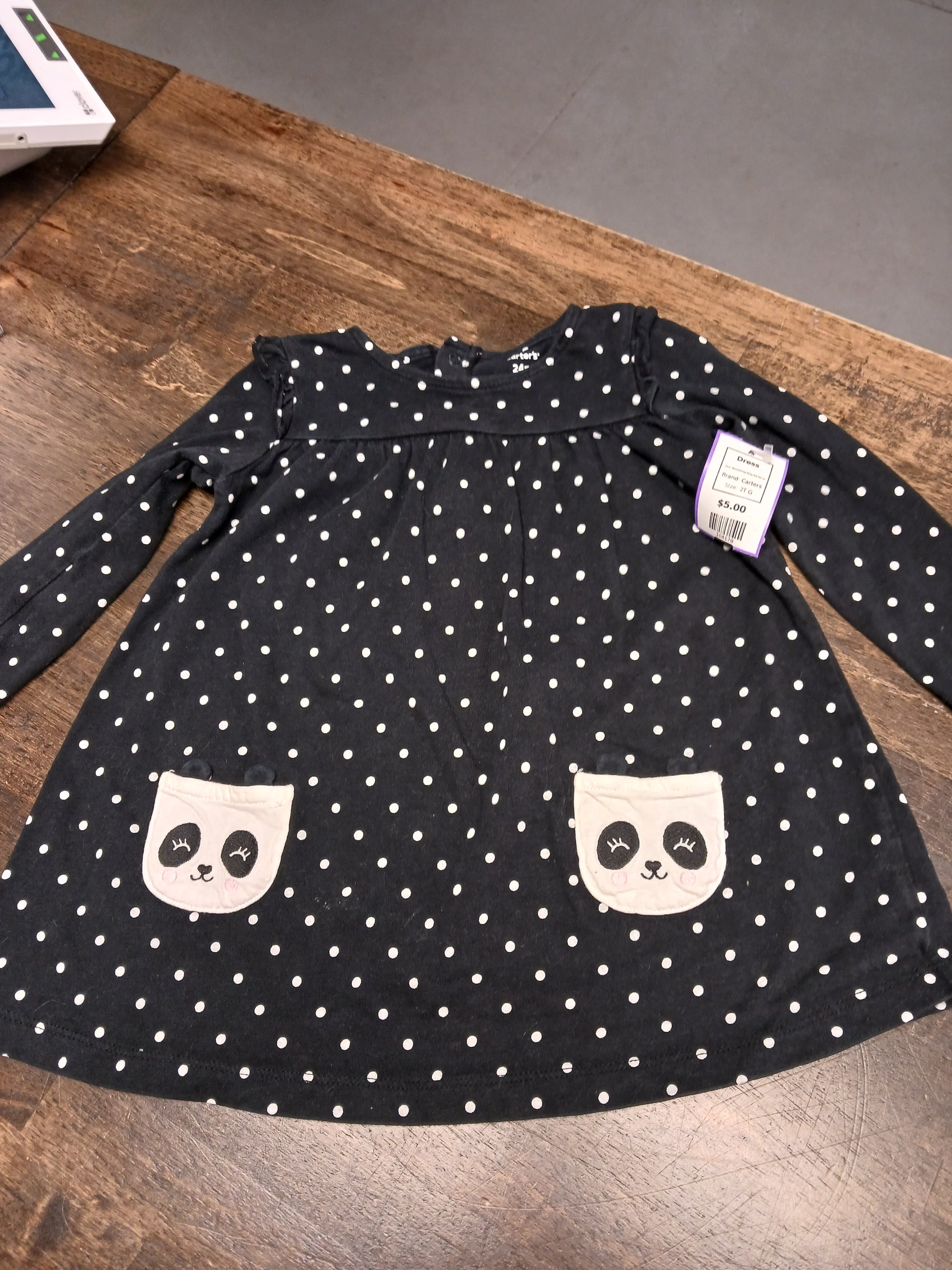 Black/White Polka Dot Panda Carters Dress, 2T G