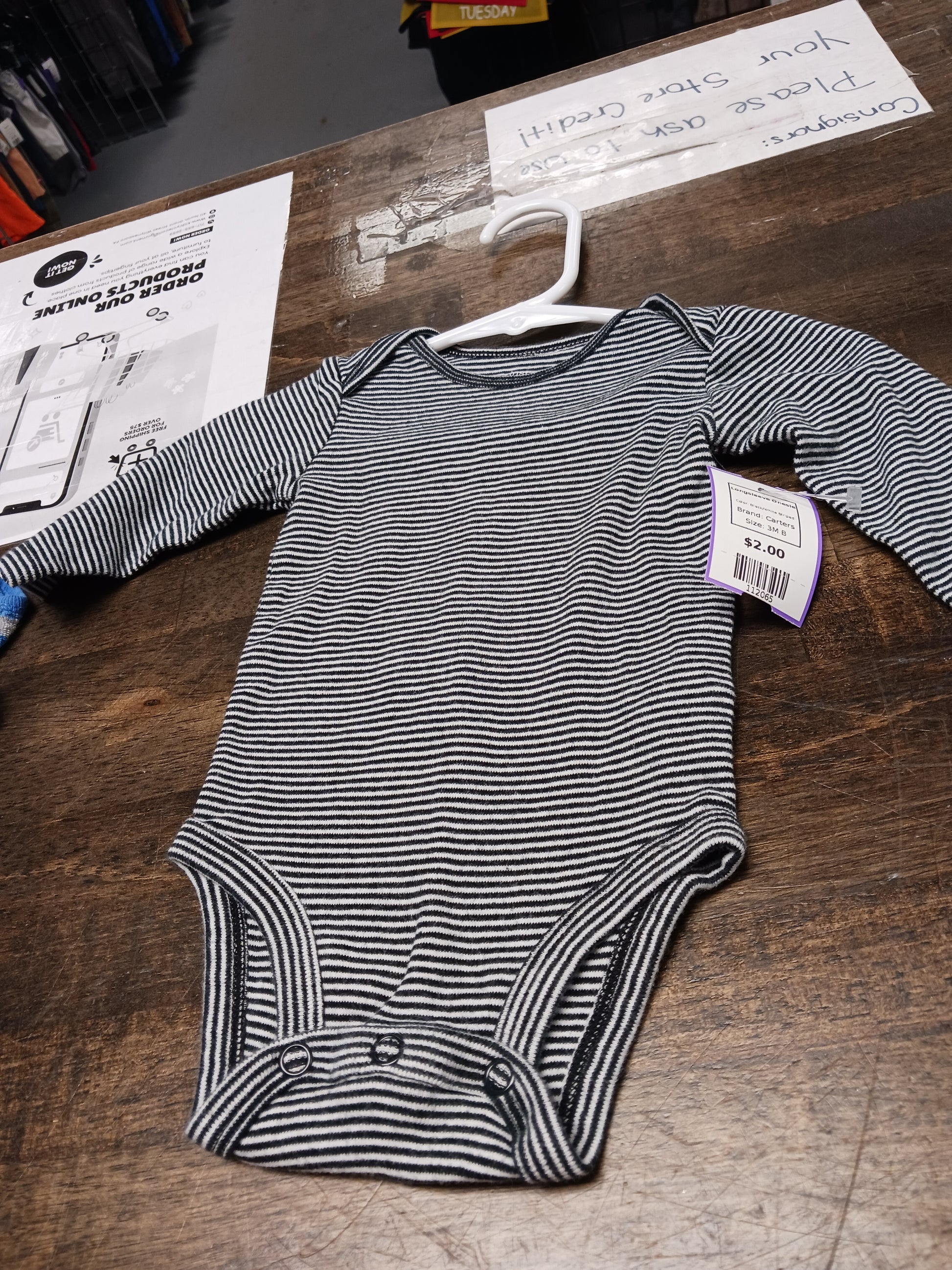 Black/White Striped Carters Longsleeve Onesie, 3M B