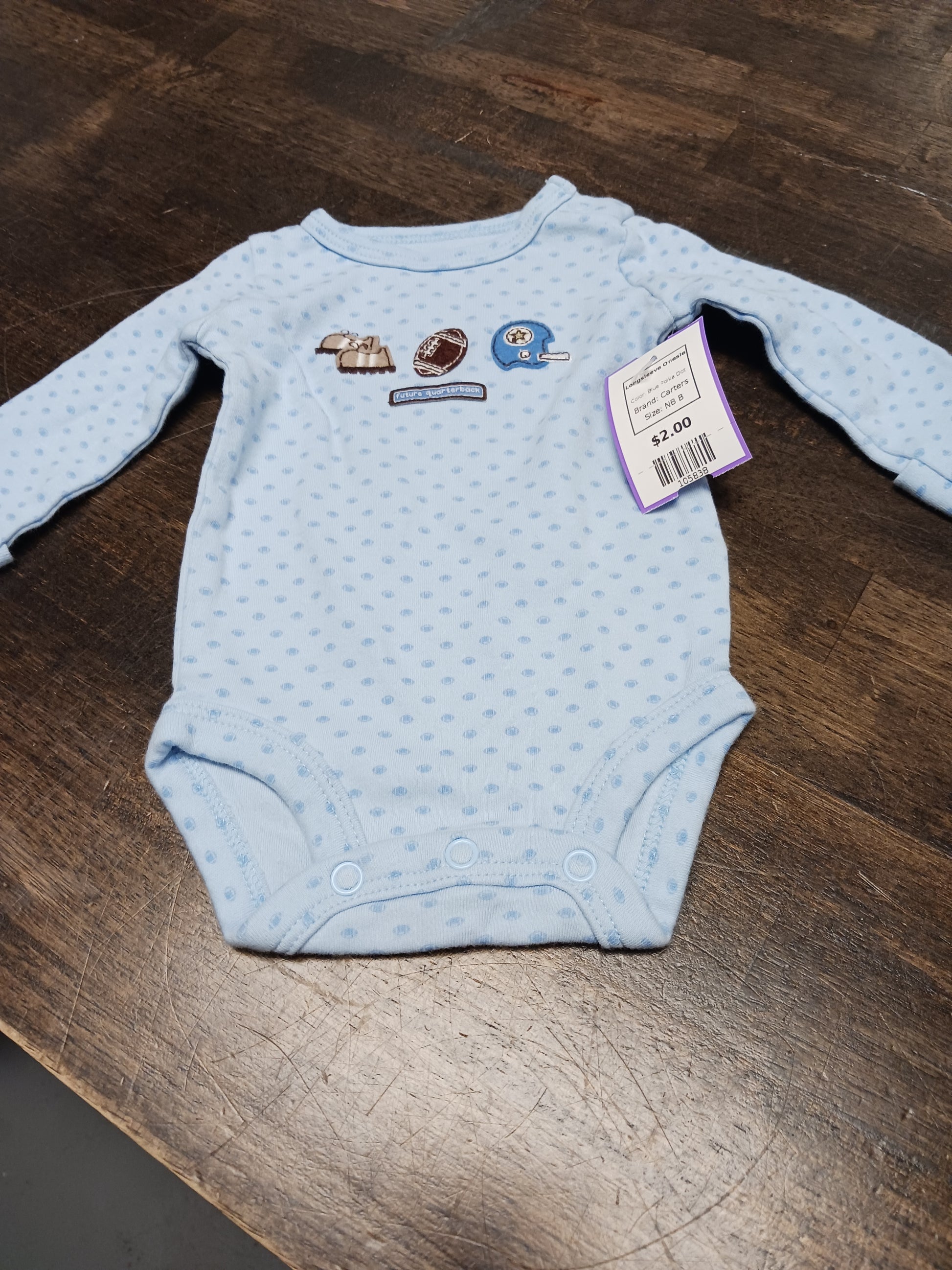 Blue Polka Dot Carters Longsleeve Onesie, NB B