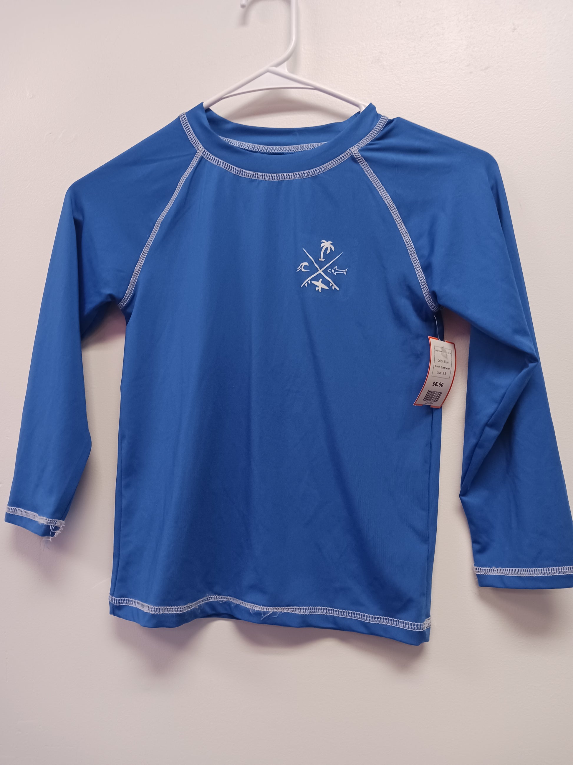 Blue Quad Seven Long Sleeve Swim Shirt 5/6, 5 B