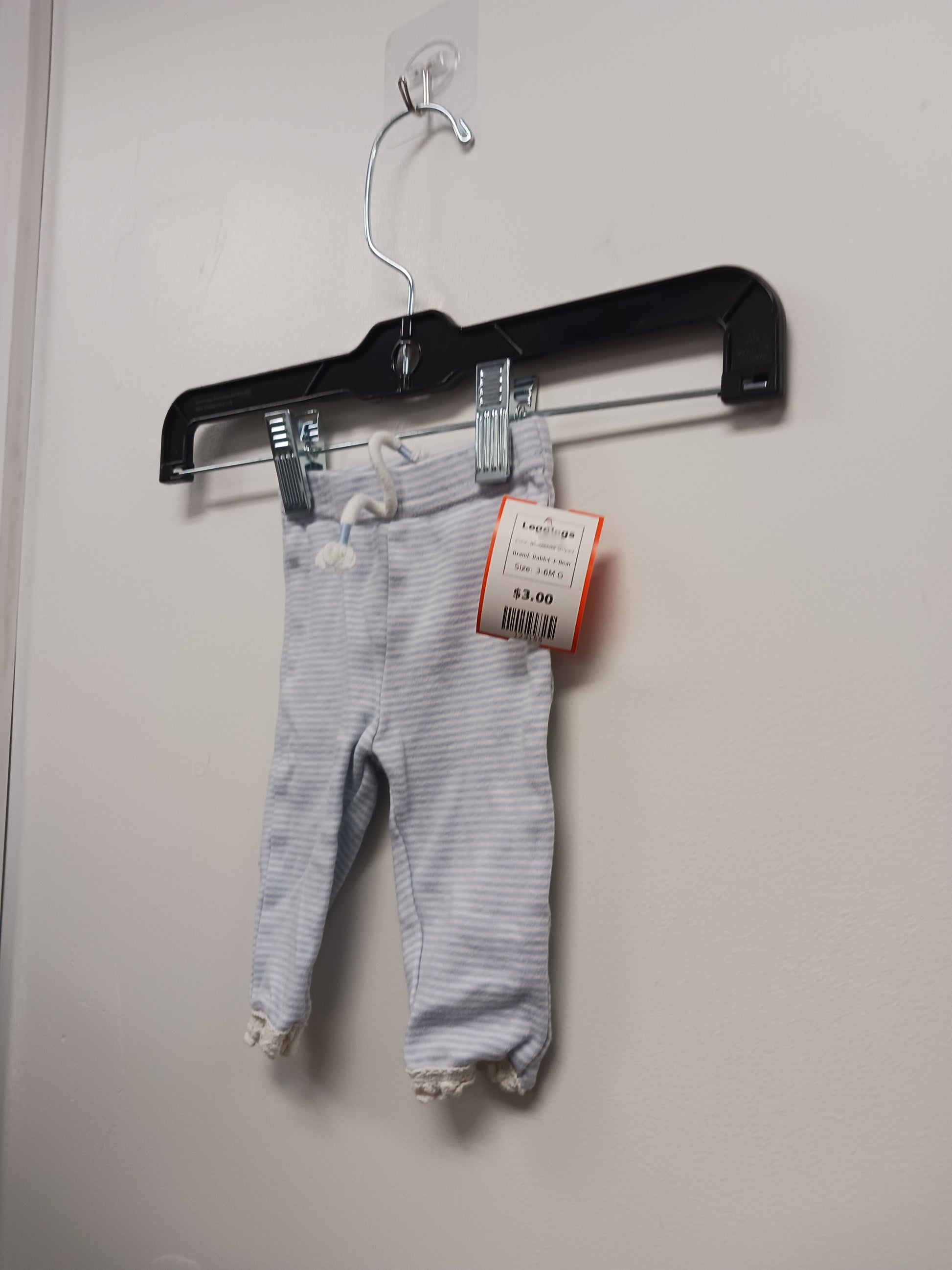 Blue/White Striped Rabbit + Bear Leggings, 3-6M G