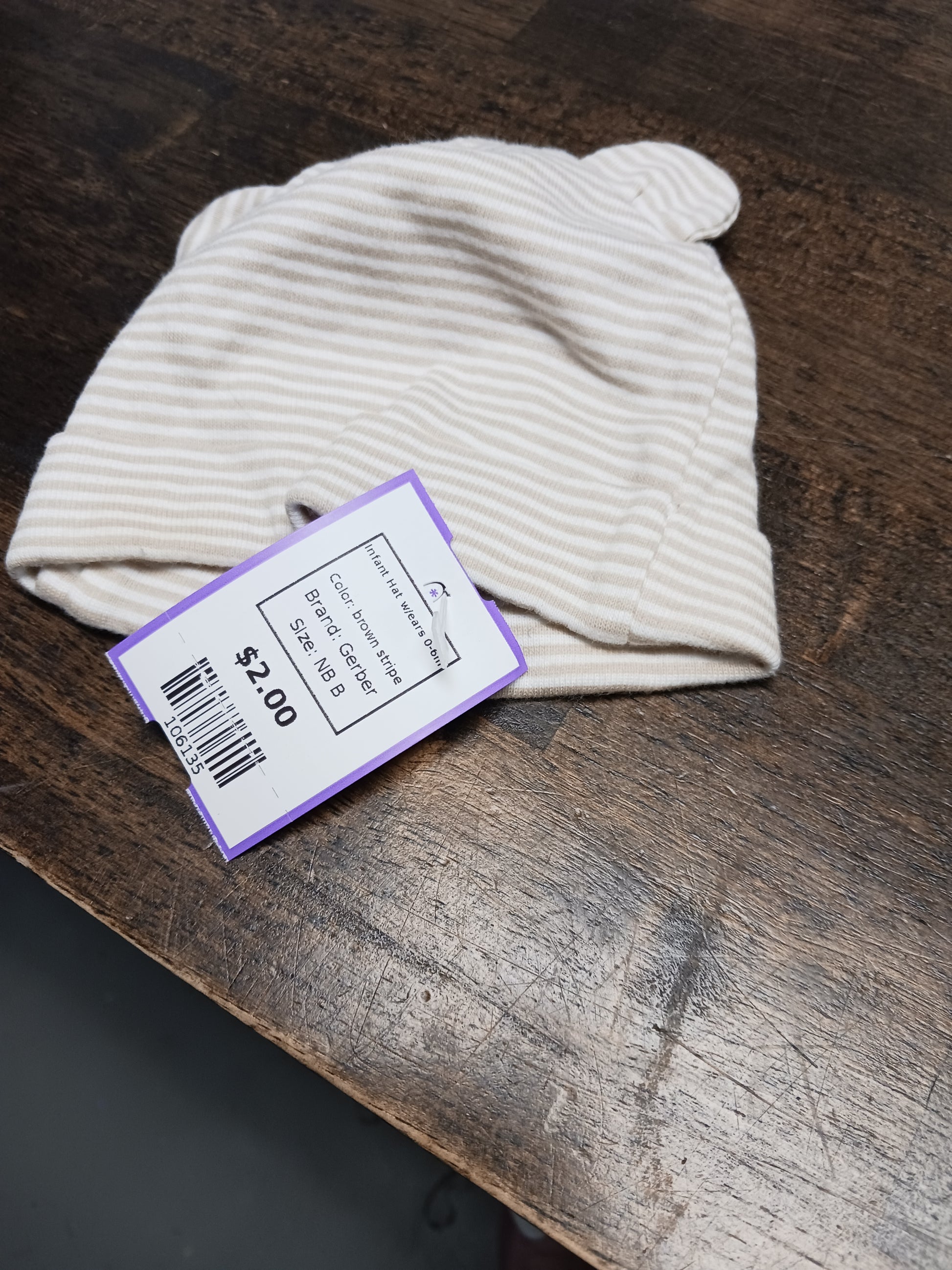 brown stripe Gerber Infant Hat w/ears 0-6m, NB B