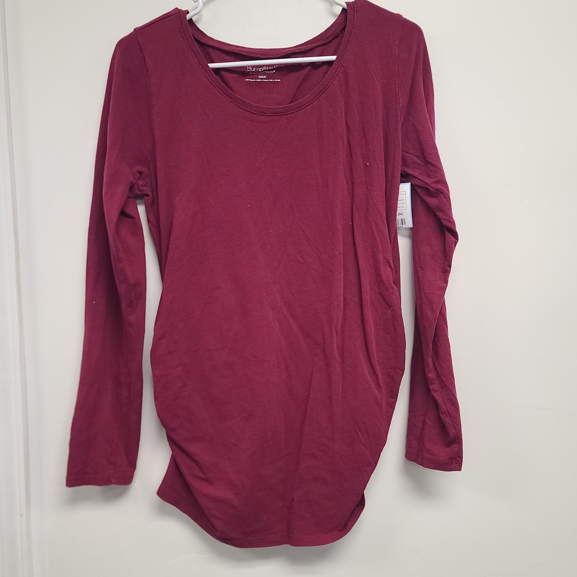 Burgandy Bump Start Longsleeve Maternity Shirt, Medium