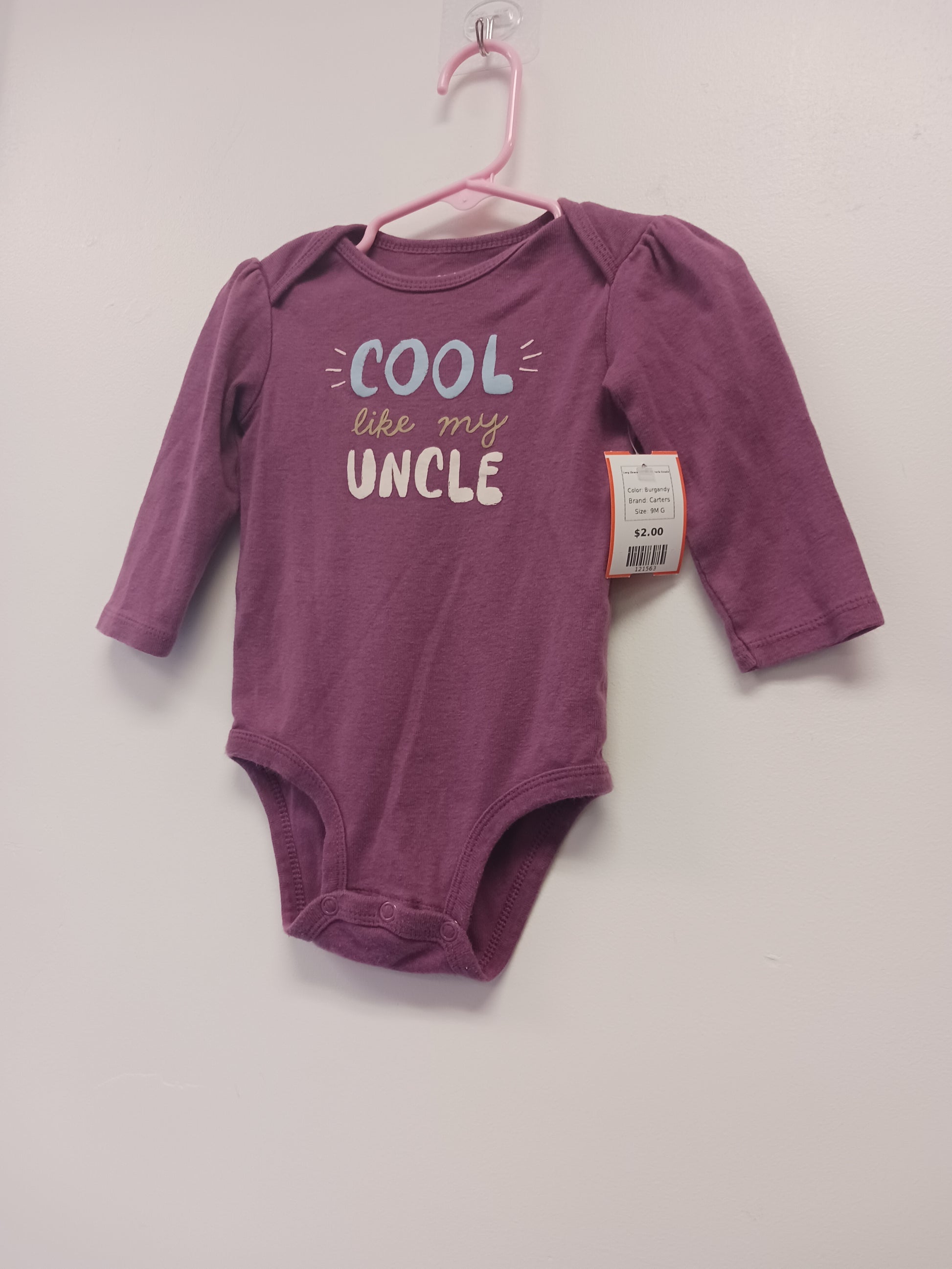 Burgandy Carters Long Sleeve Cool like my Uncle Onesie, 9M G
