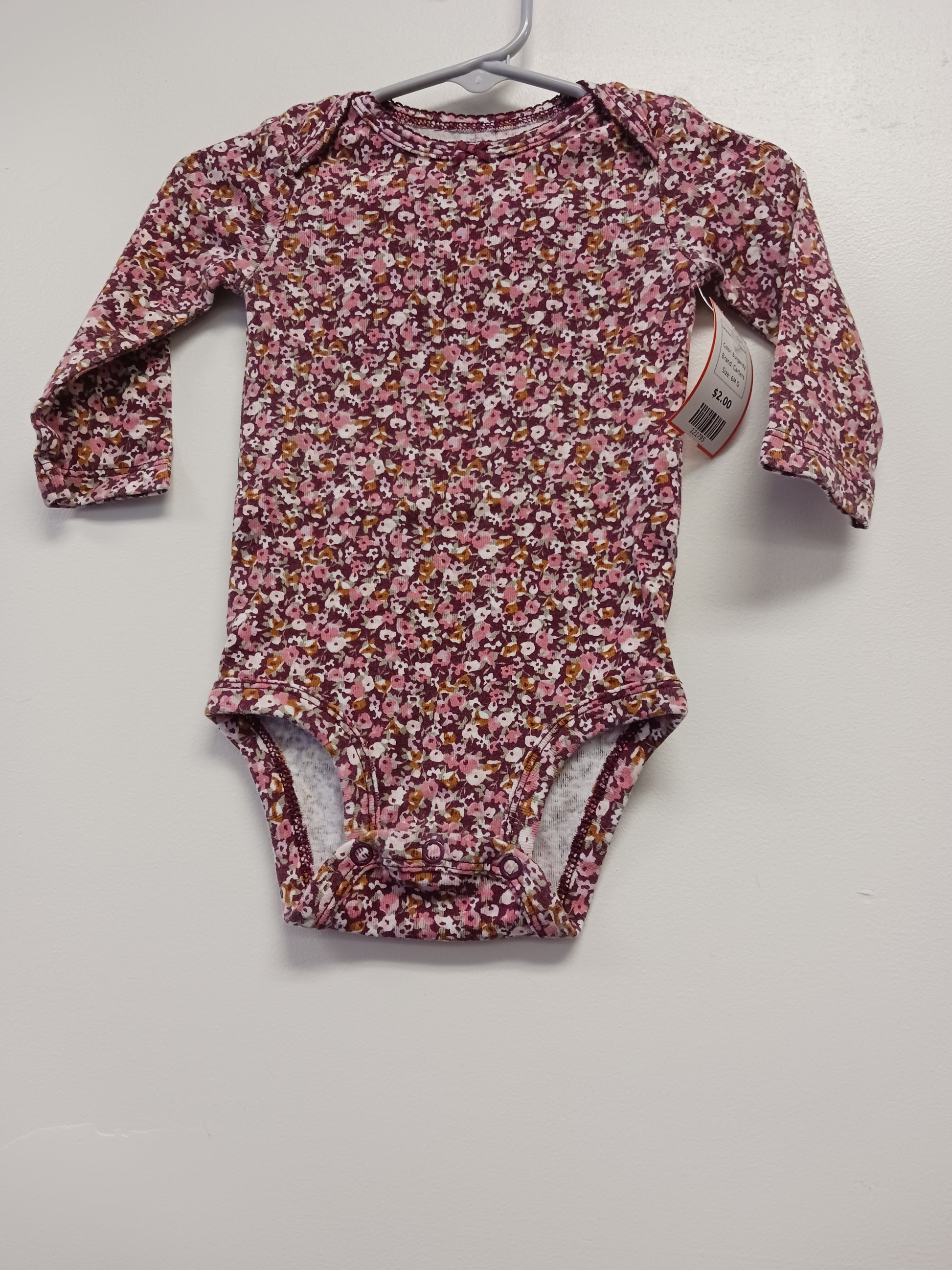Burgandy Carters Long Sleeve Flower Onesie, 6M G