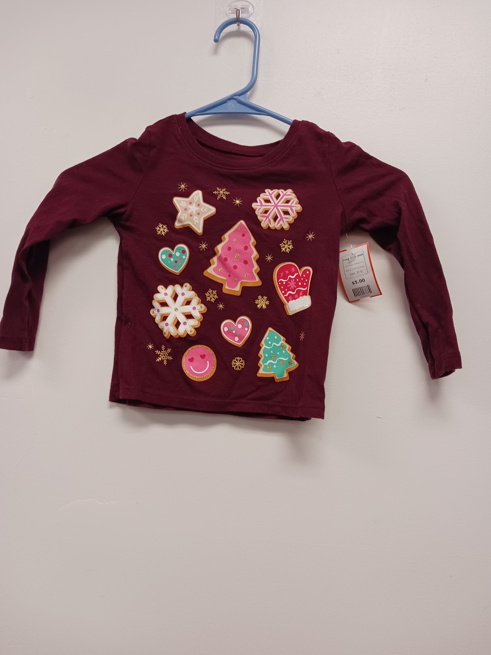 Burgandy Christmas Cookie Childrens Place Longsleeve Shirt, 2T G