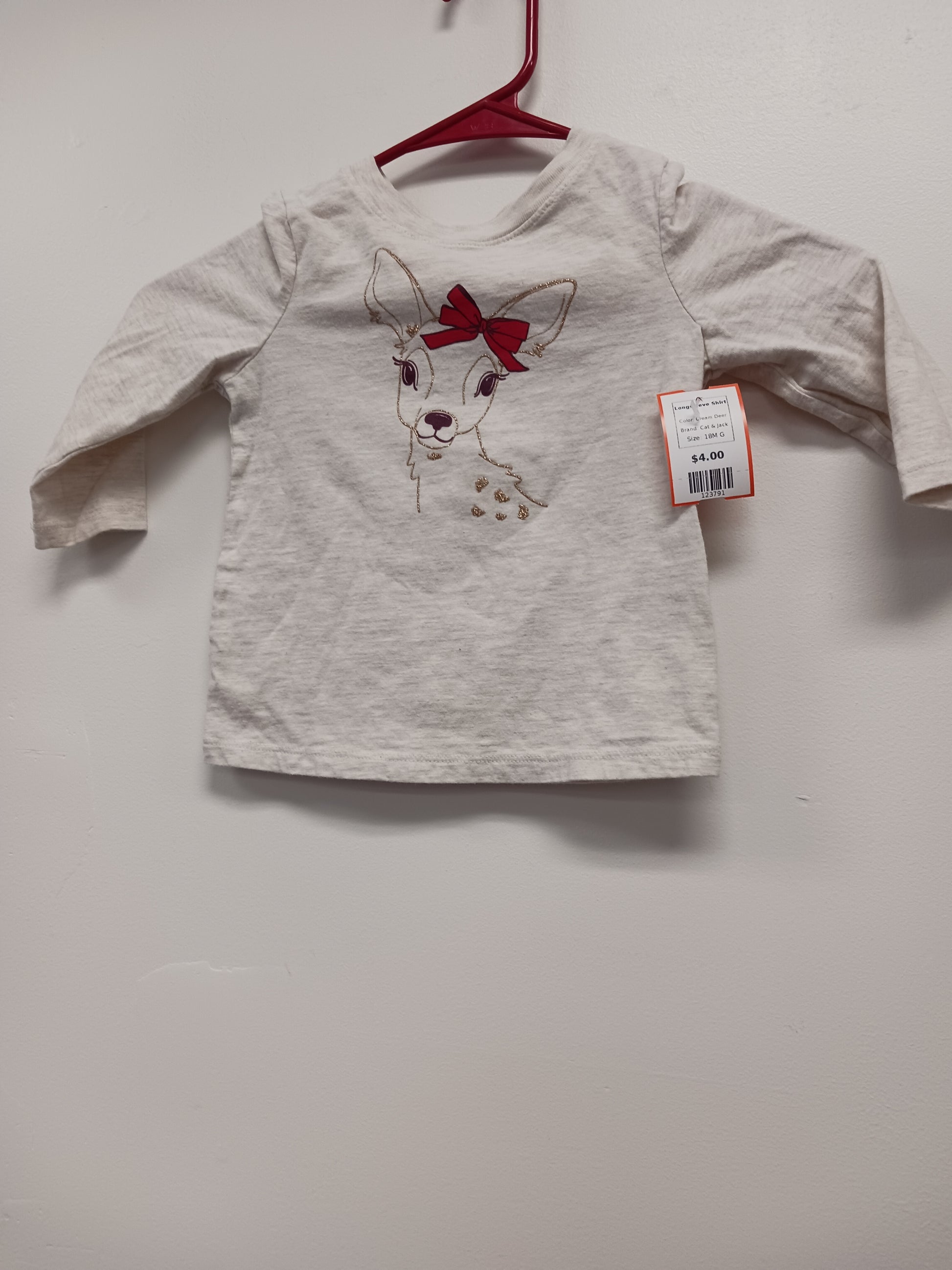 Cream Deer Cat & Jack Longsleeve Shirt, 18M G