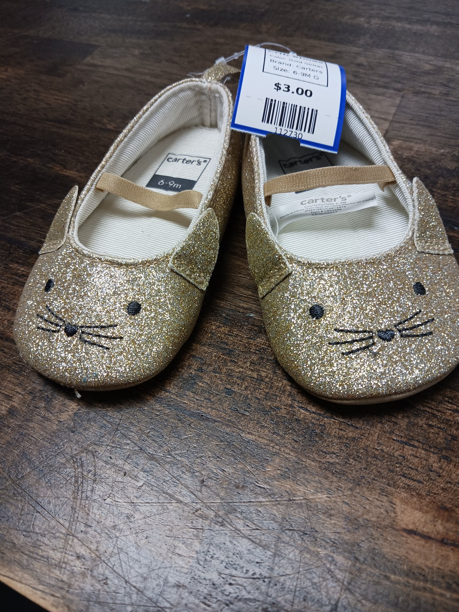 Gold Glitter Carters Crib Shoes, 6-9M G