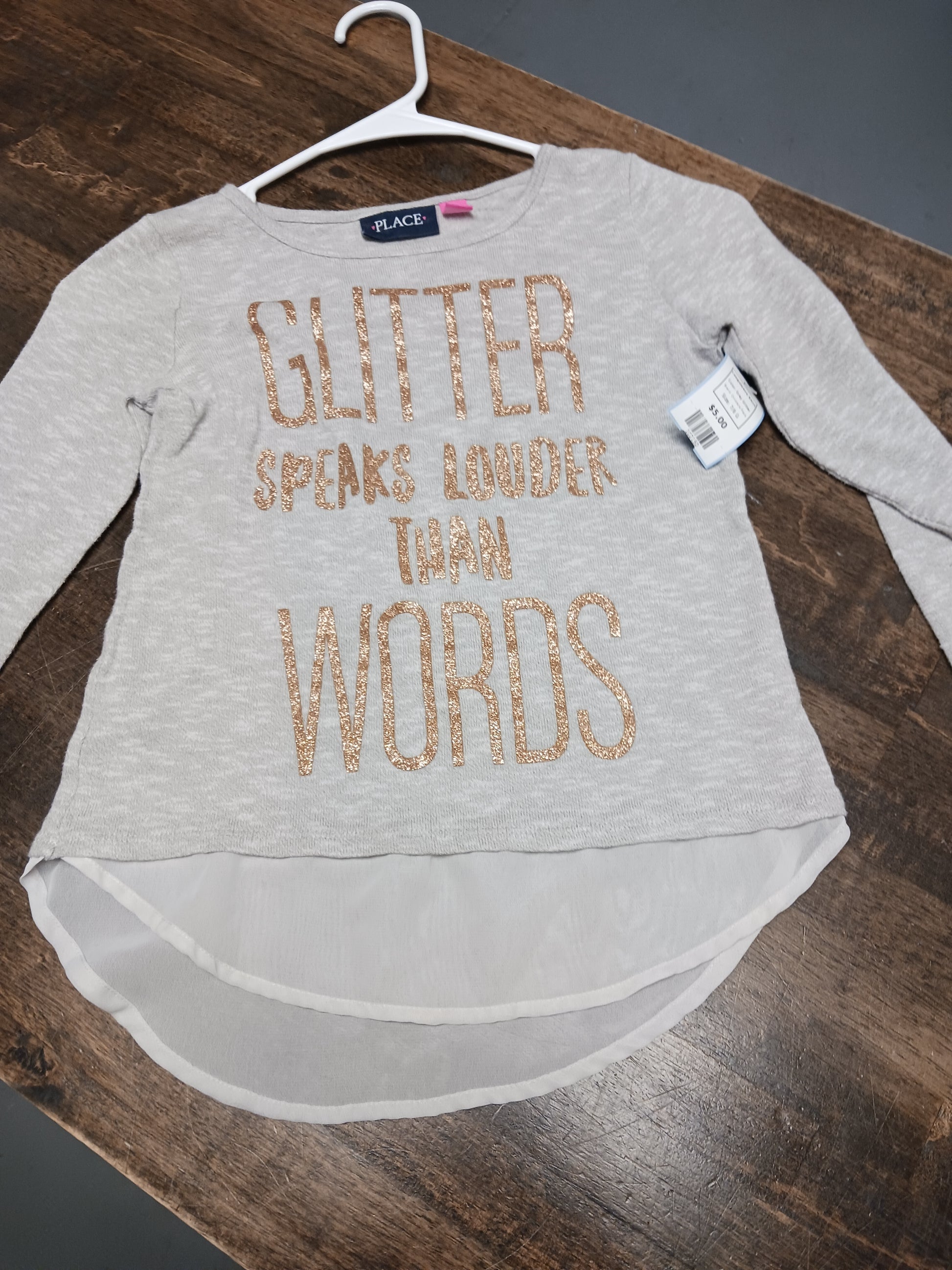 Grey Glitter Childrens Place Longsleeve Shirt, 7/8 G