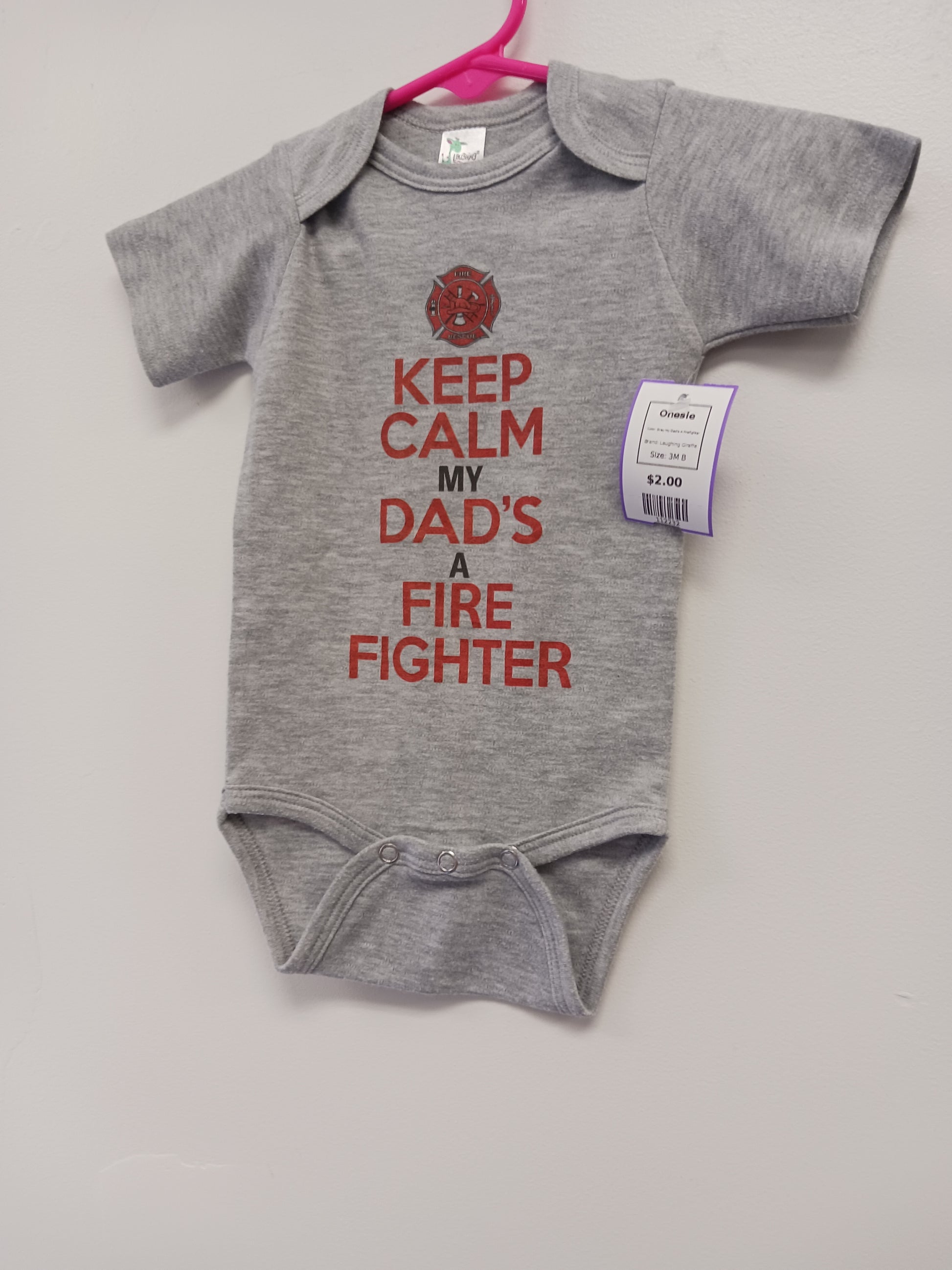 Grey My Dad's A Firefighter Laughing Giraffe Onesie, 3M B