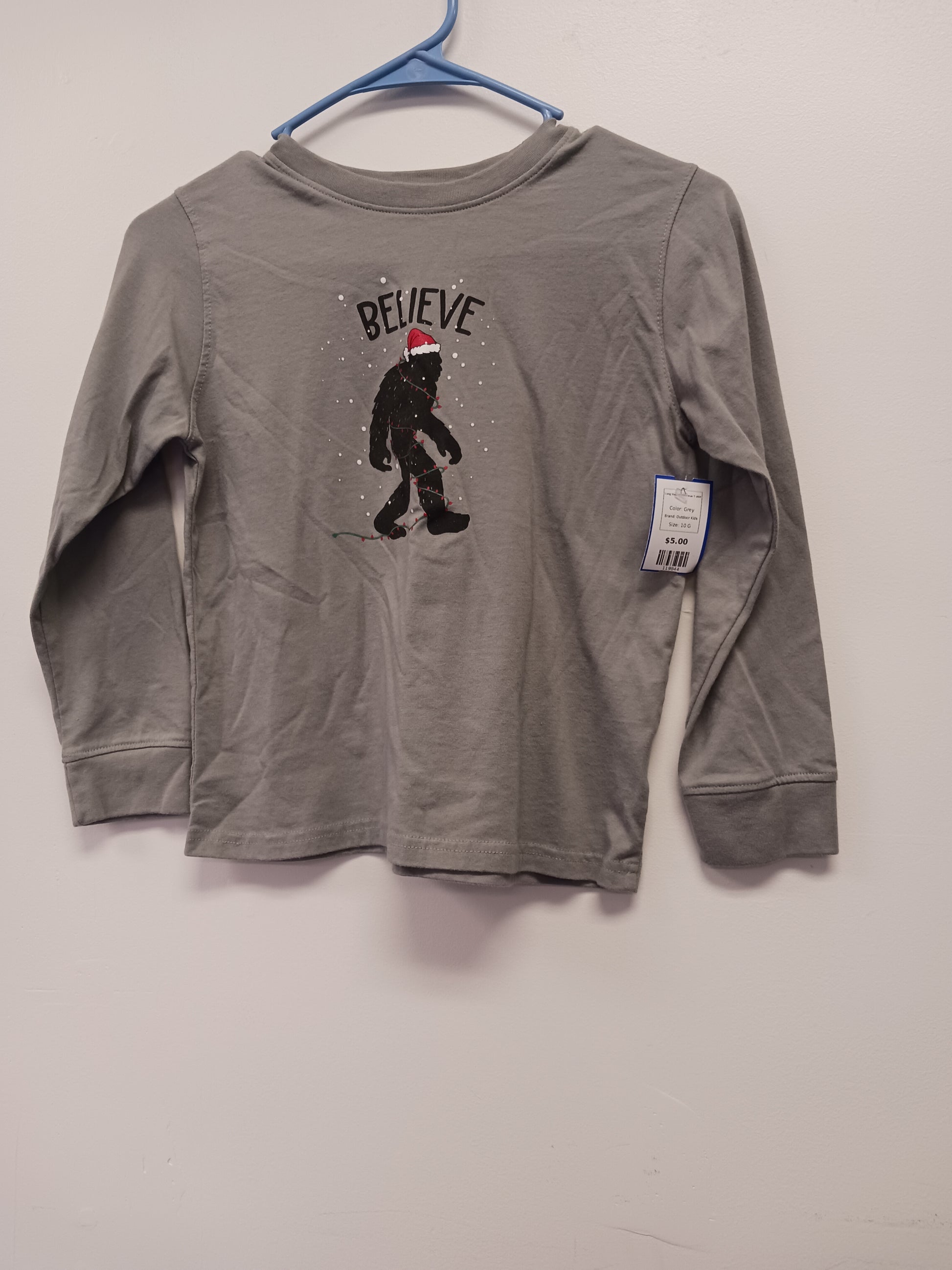 Grey Outdoor Kids Long Sleeve Christmas T shirt, 10 G
