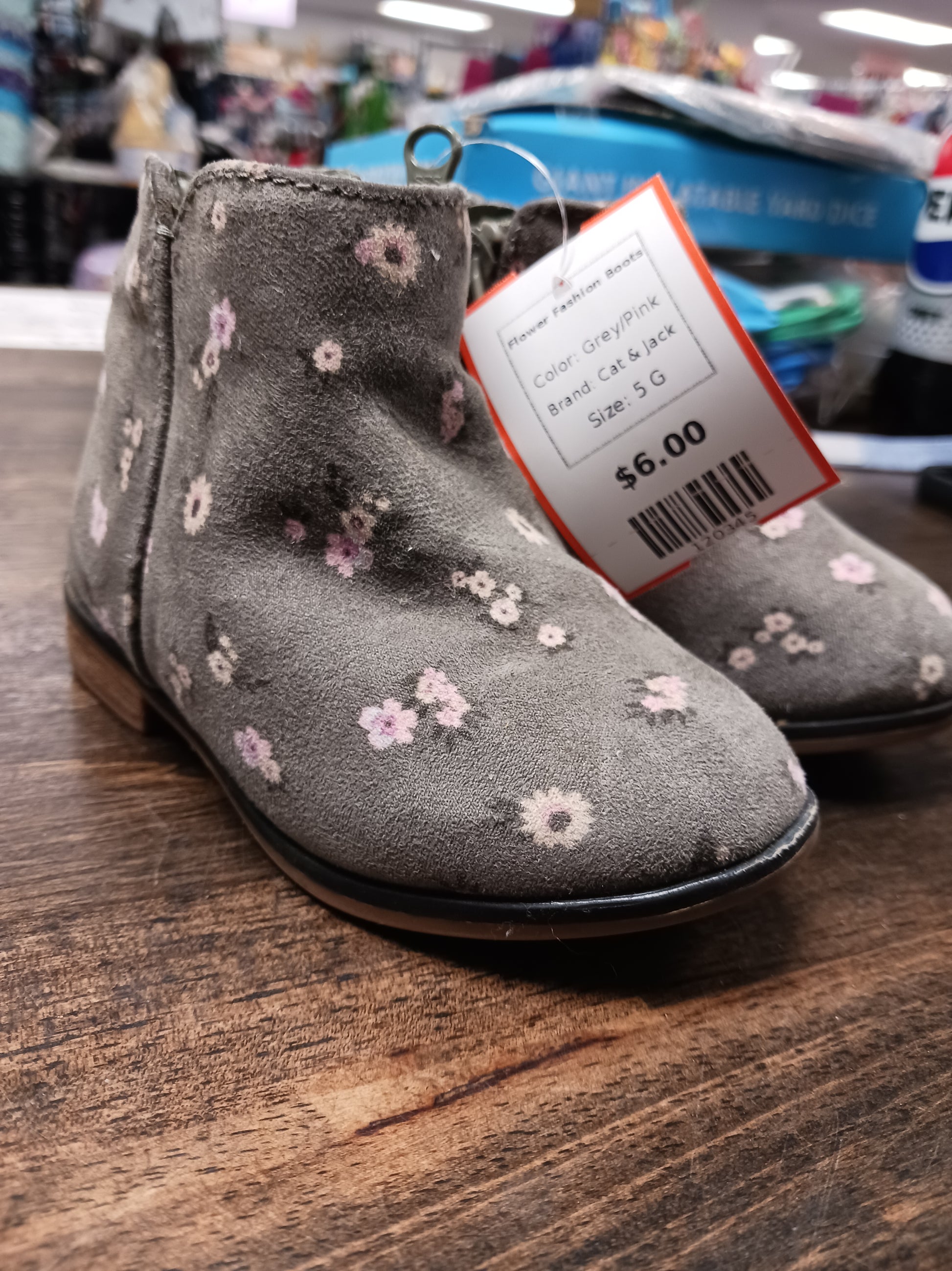Grey/Pink Cat & Jack Flower Fashion Boots, 5 G