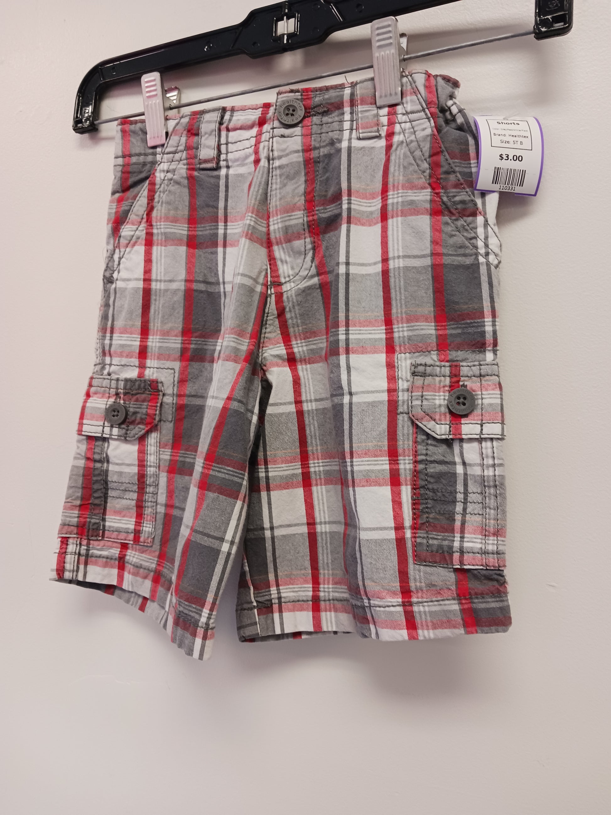 Grey/Red/White Plaid Healthtex Shorts, 5T B