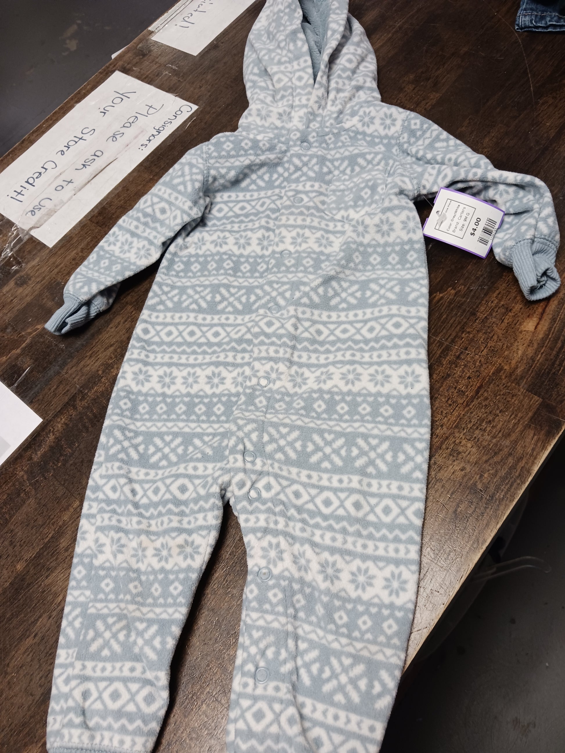 Grey/White Carters Hooded Pant One Piece, 9M G