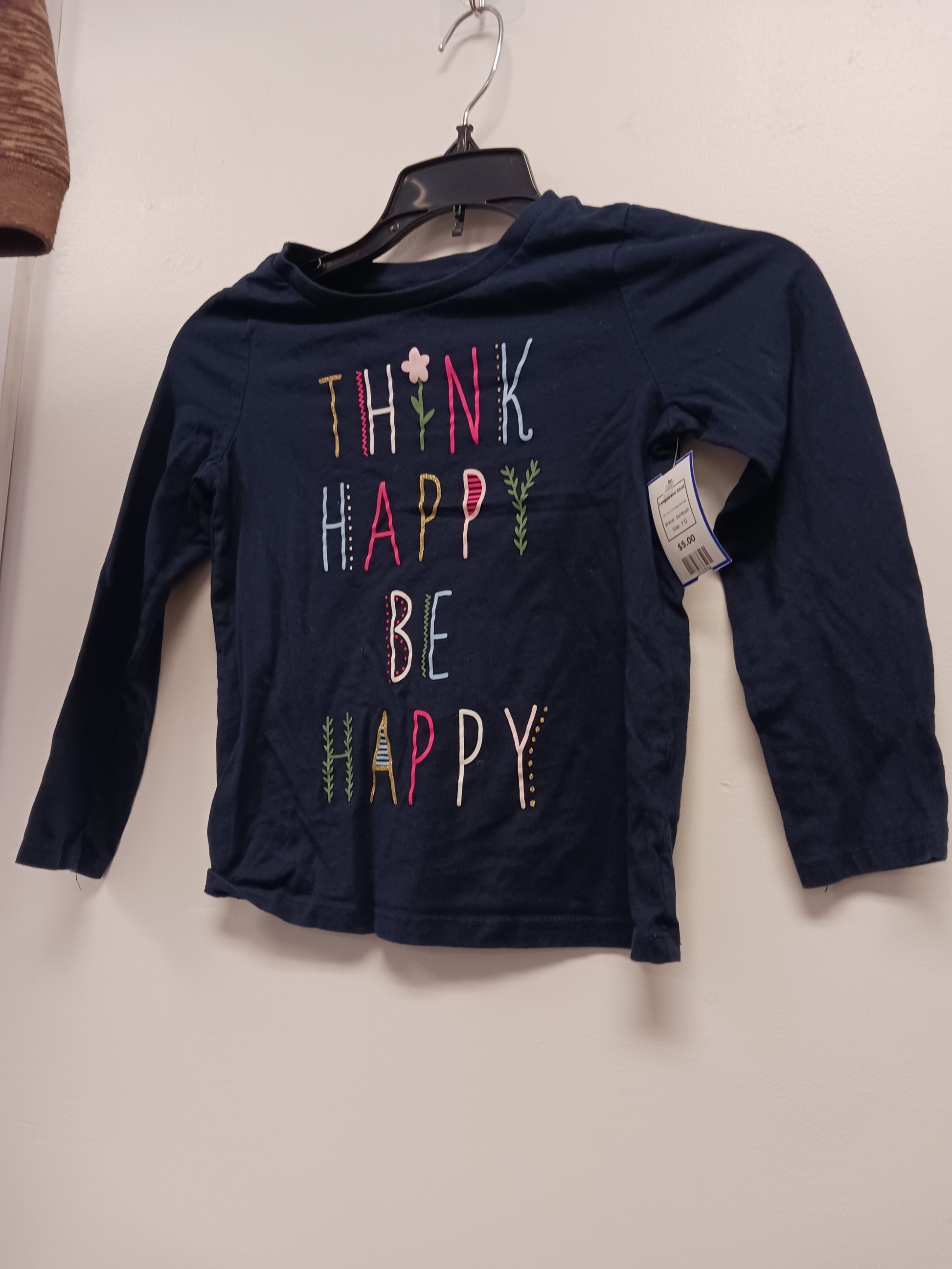 Navy Think Happy Be Happy OshKosh Longsleeve Shirt, 7 G