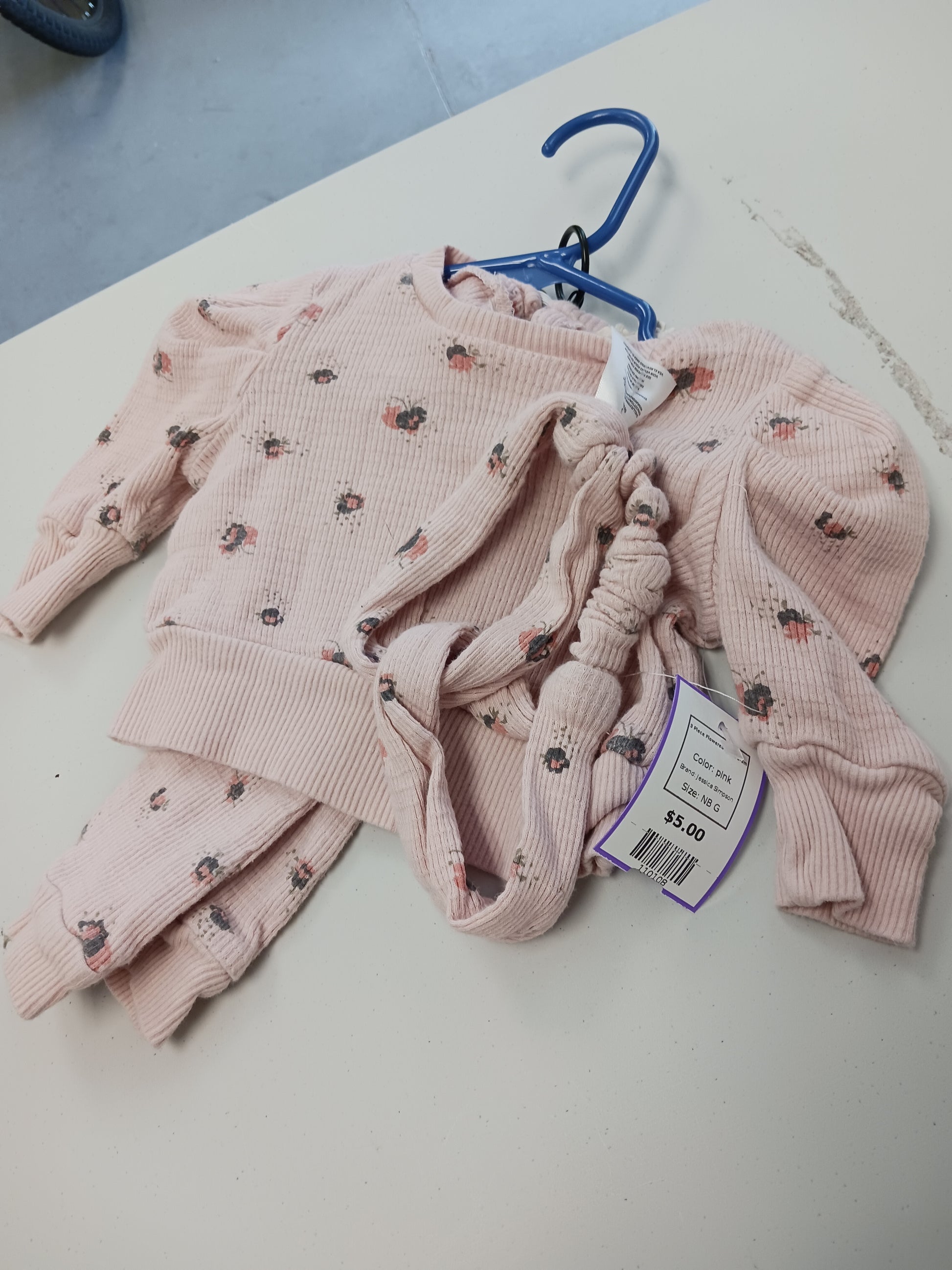 pink Jessica Simpson 3 Piece Flowered Outfit 0-3m, NB G