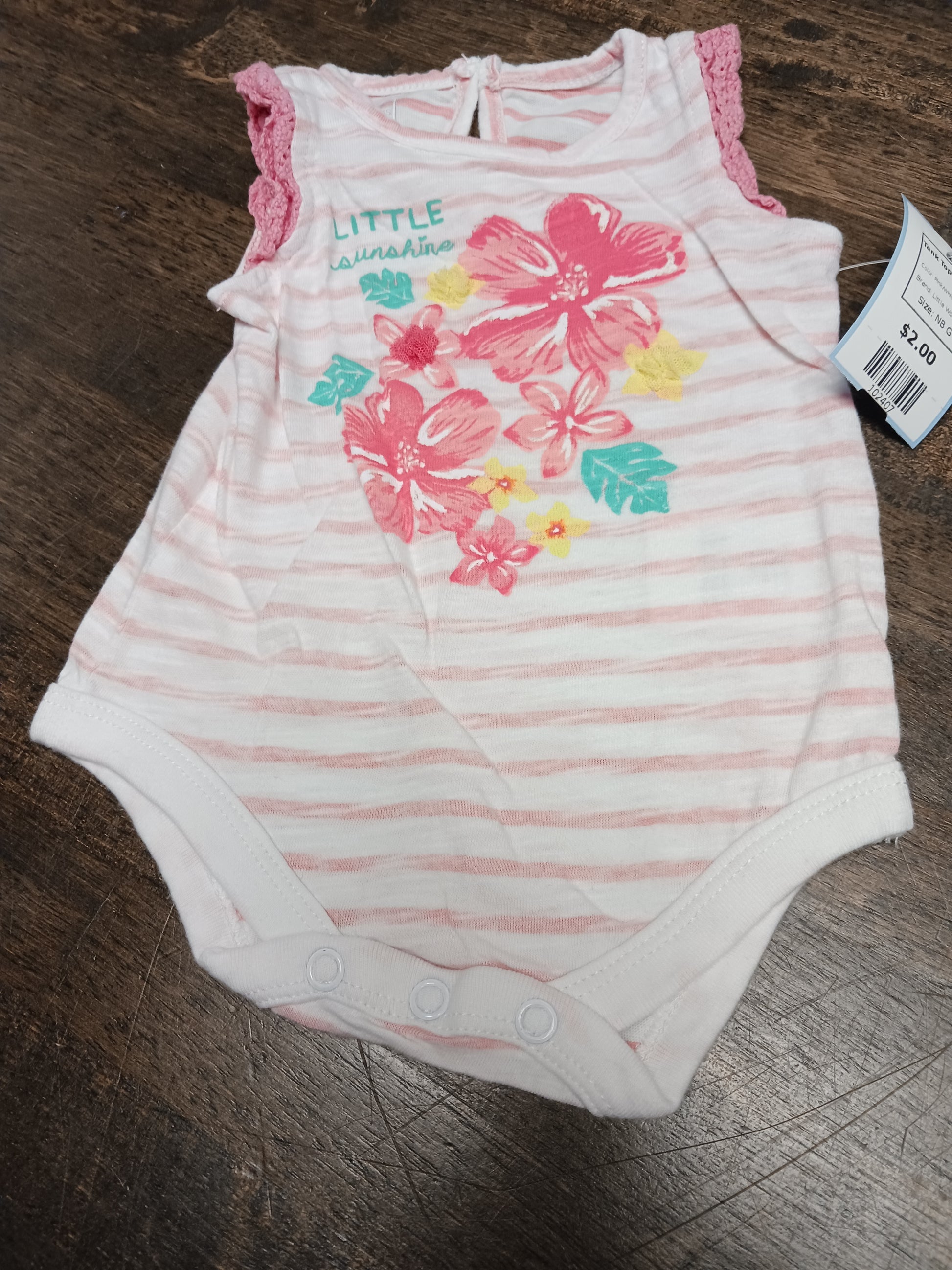 Pink/White Flower Little Wonders Tank Top Onesie, NB G
