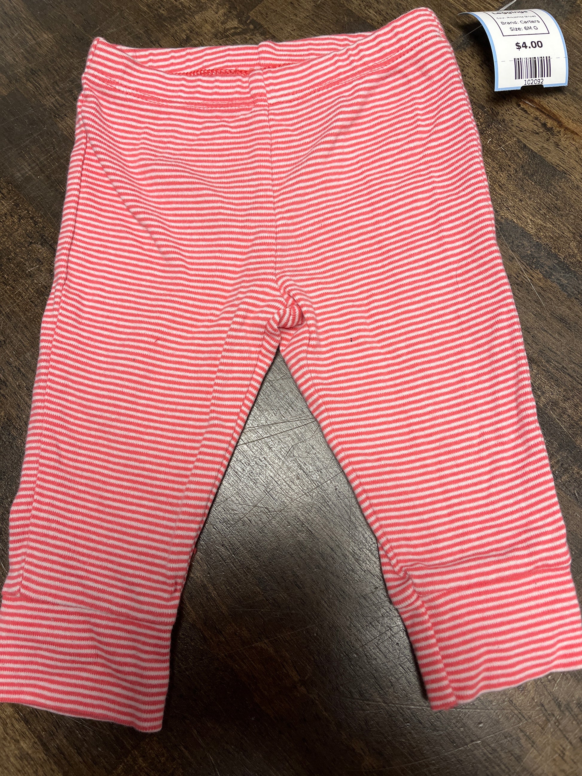 Pink/White Striped Carters Leggings, 6M G