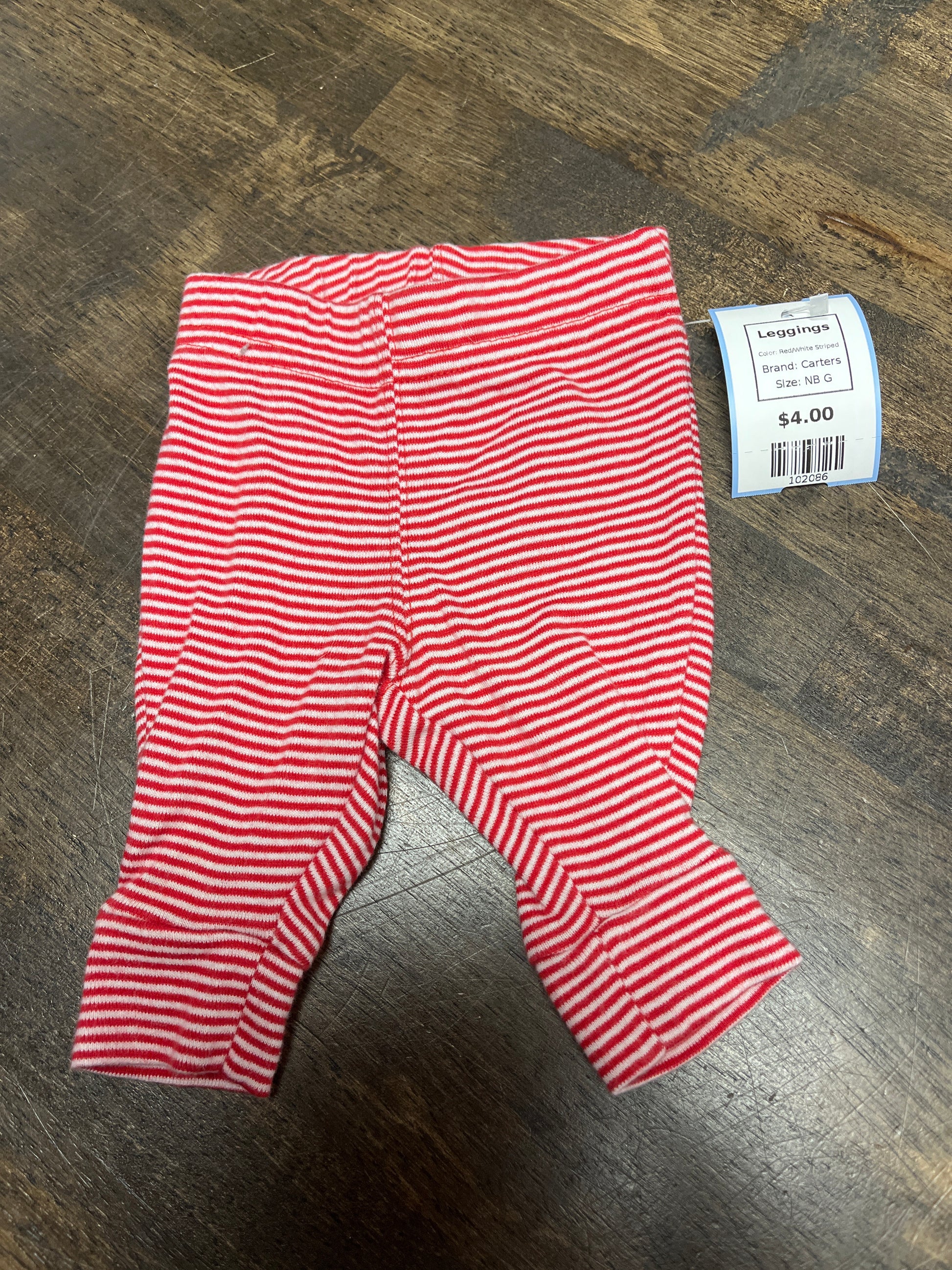 Red/White Striped Carters Leggings, NB G