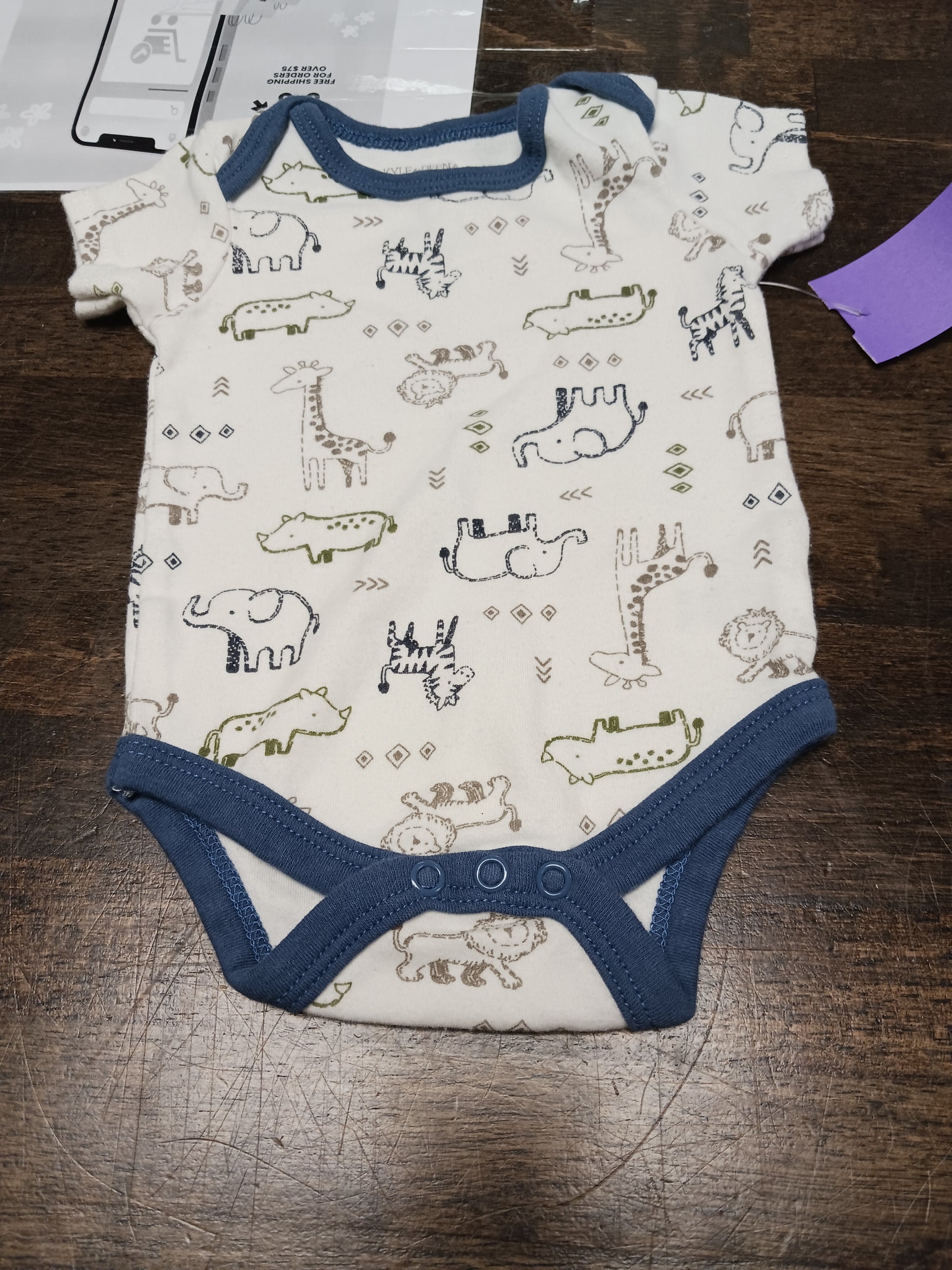 White/Blue Animal Kyle & Deena Onesie, 3M B