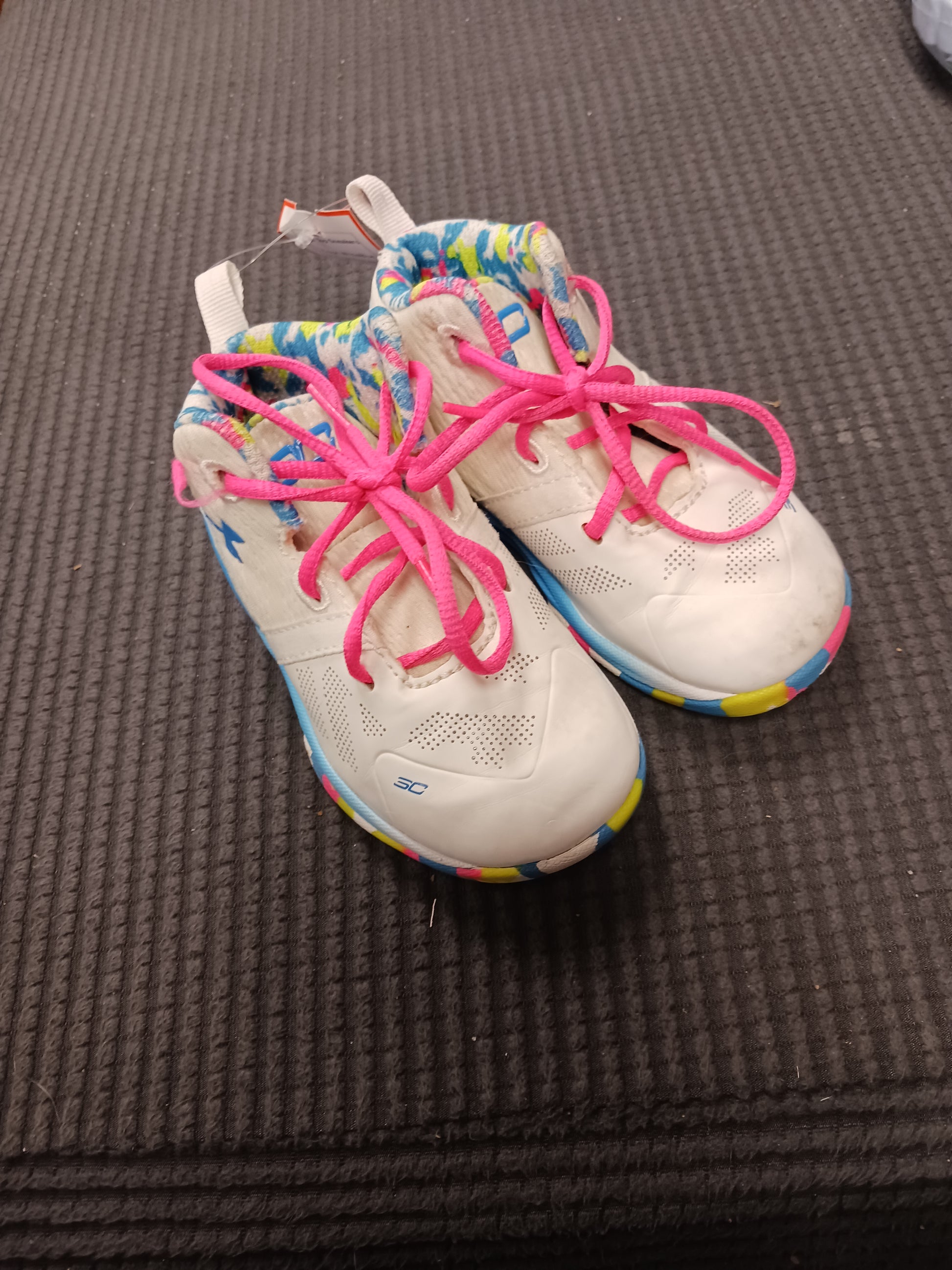 White/Blue Under Armour High Top Sneakers, 6 G