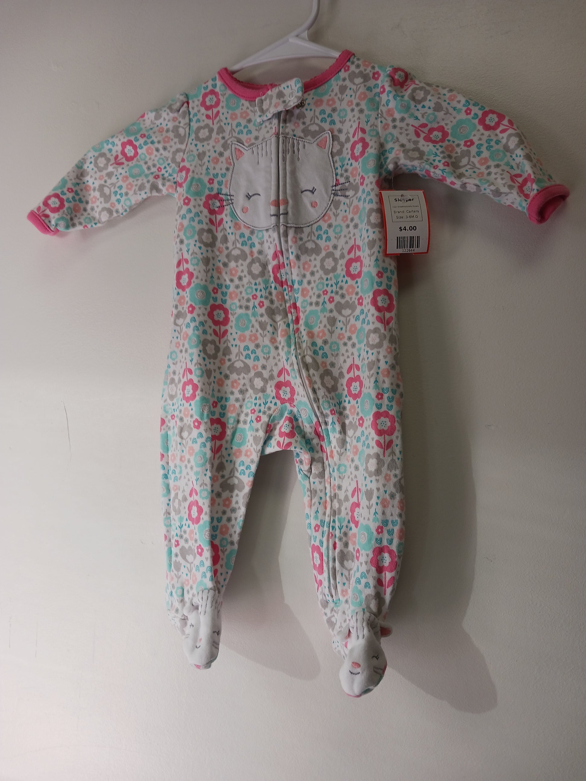 White/Pink/Colorful Flowers Carters Sleeper, 3-6M G