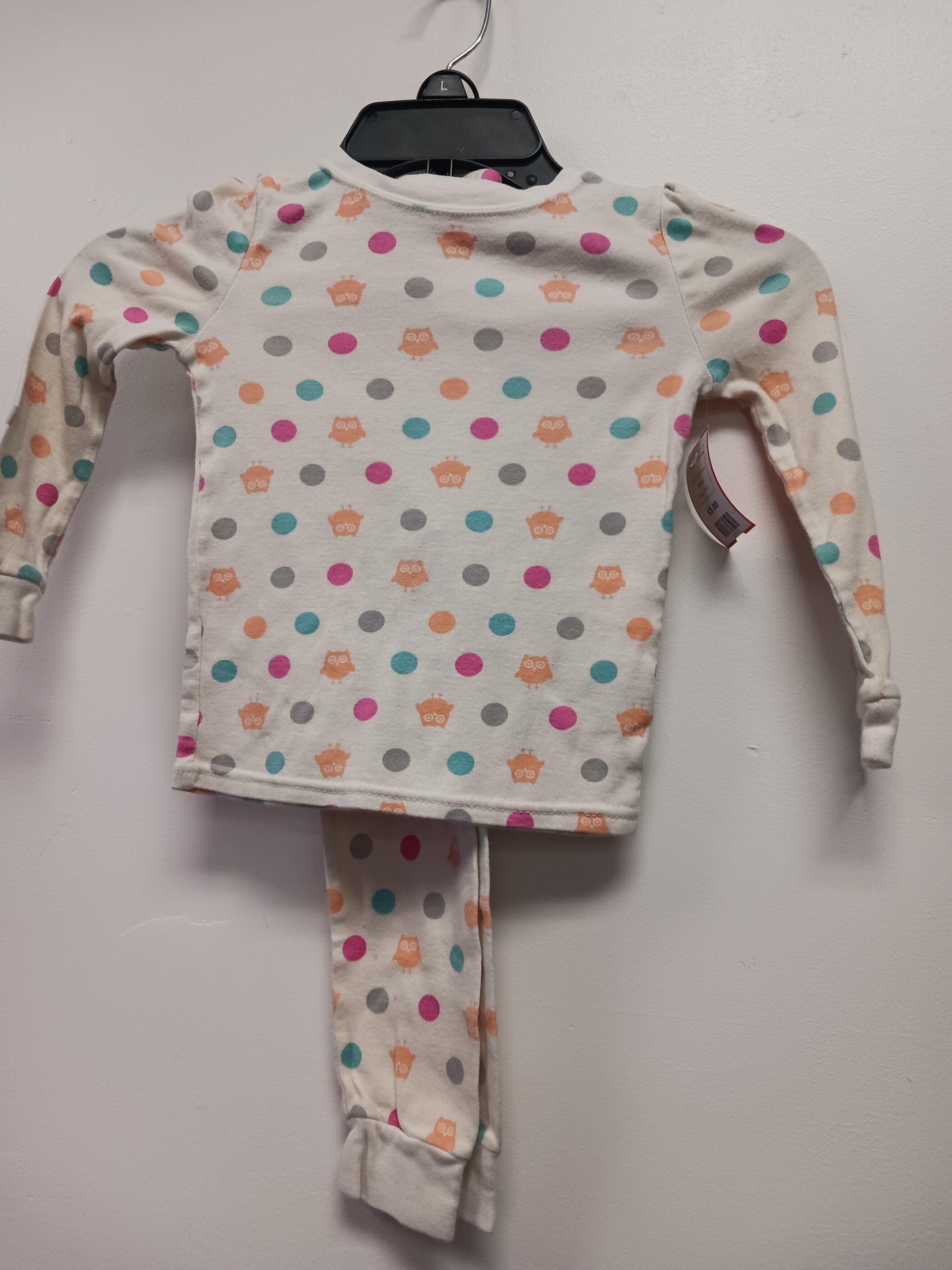 white/pink/green 2 Piece Owls/dots PJS, 5T G