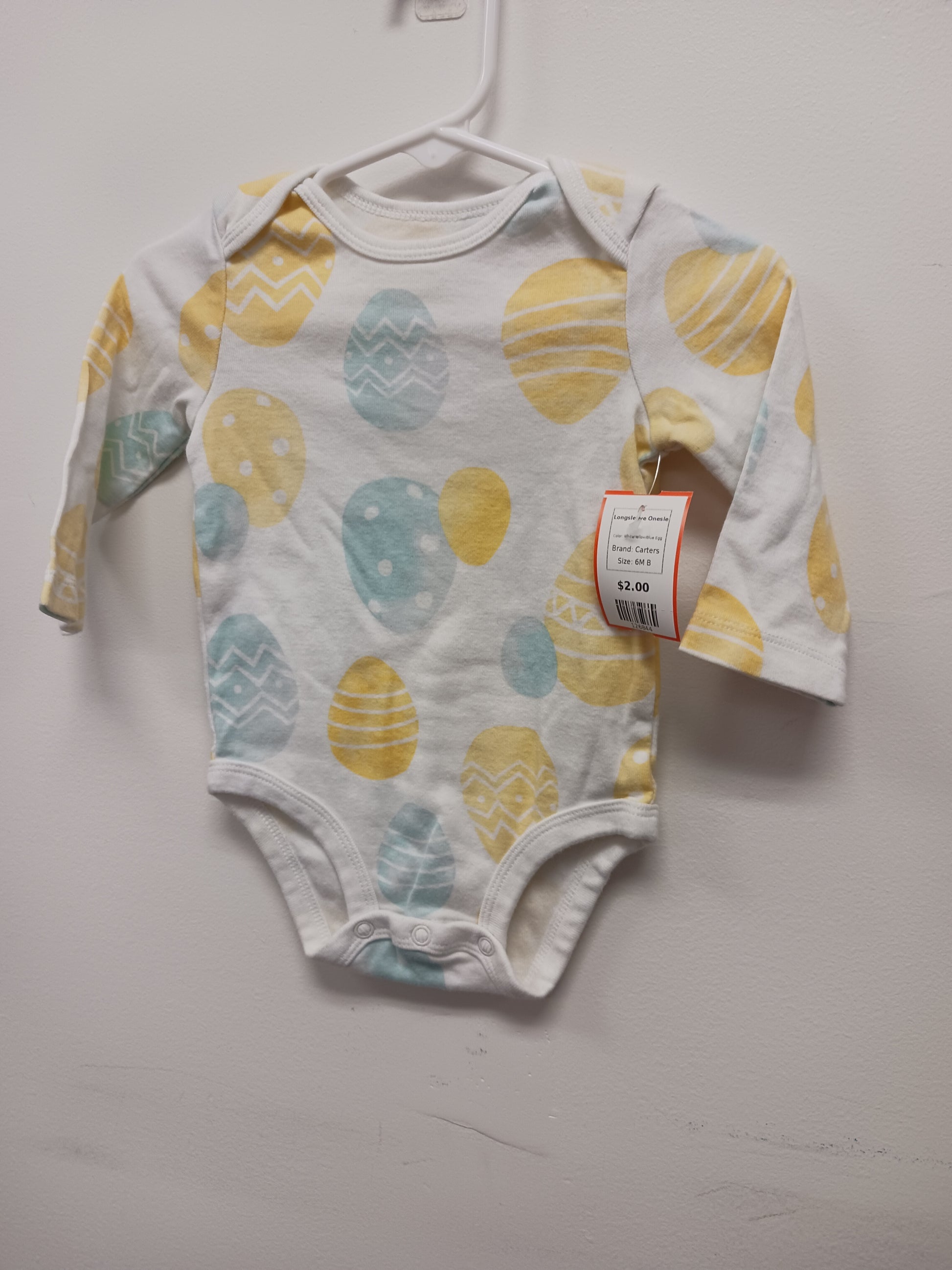 White/Yellow/Blue Egg Carters Longsleeve Onesie, 6M B